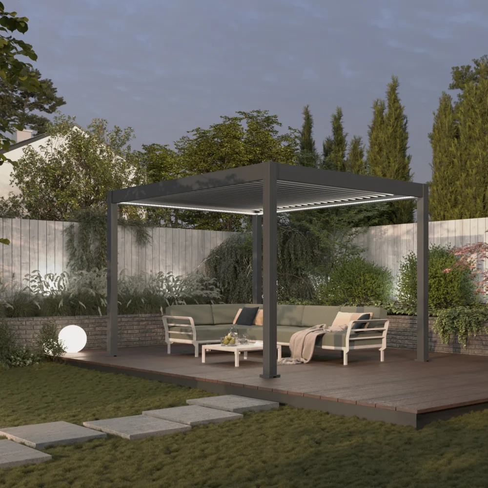 Pergola Aluminiowa Ogrodowa 300x300 cm DELUXE – Wolnostojąca, Elektryczna + LED