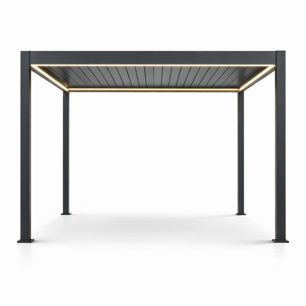 Pergola Aluminiowa Ogrodowa 400x400 cm PREMIUM – Wolnostojąca, Elektryczna + LED