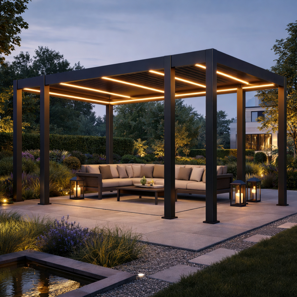 Pergola Aluminiowa Ogrodowa 360x720 cm DELUXE – Wolnostojąca, Elektryczna + LED