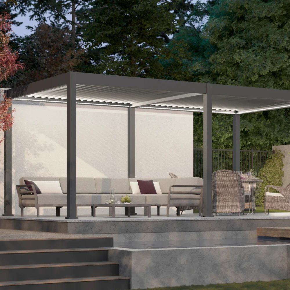 Pergola Aluminiowa Ogrodowa 360x530 cm DELUXE – Wolnostojąca, Elektryczna + LED