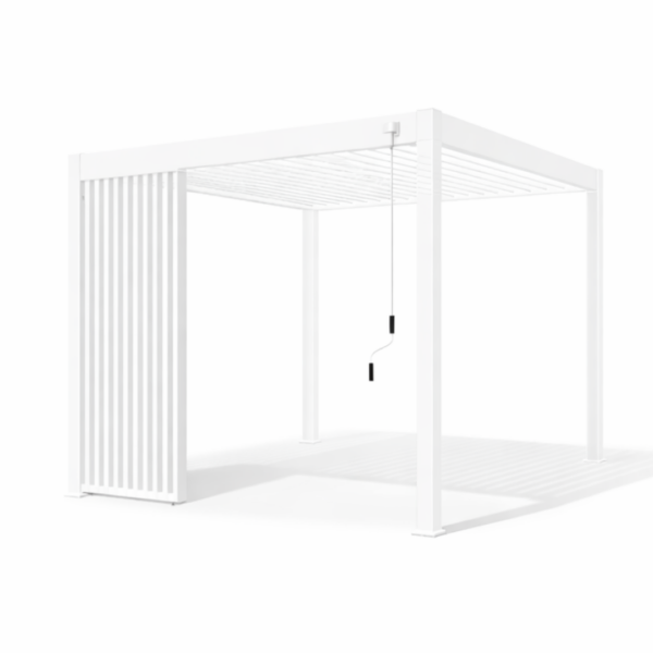 Pionowy stały panel Shutters w kolorze białym RAL9016 to eleganckie i trwałe rozwiązanie, które nada Twojej pergoli nowoczesny charakter oraz skutecznie ochroni przed wiatrem, słońcem i spojrzeniami sąsiadów.