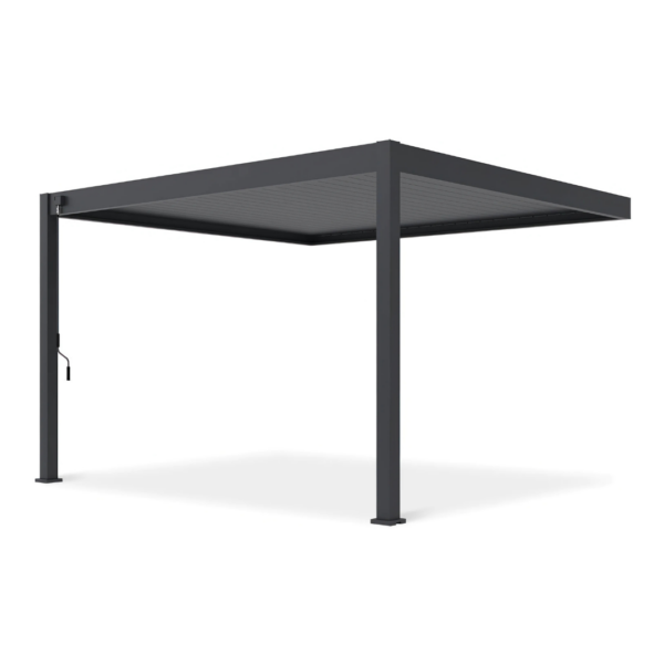 Pergola wyposażona jest w regulowane lamele dachowe obracane w zakresie do 135°, sterowane ręcznie.