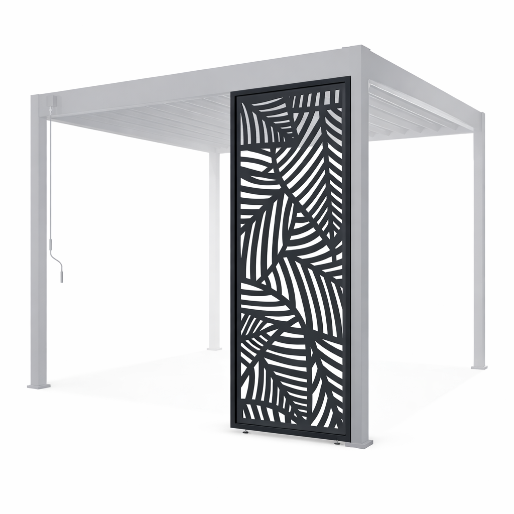 Uchylne lamele w układzie poziomym pozwalają na precyzyjne dopasowanie przestrzeni do aktualnych warunków pogodowych. W zależności od ustawienia panel może: