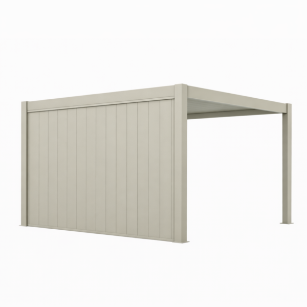 Jeżeli poszukujesz nowoczesnej ściany panelowej do pergoli w kolorze kamiennym, która zapewni regulowaną ochronę i estetyczne wykończenie konstrukcji, ten model będzie praktycznym i trwałym rozwiązaniem.